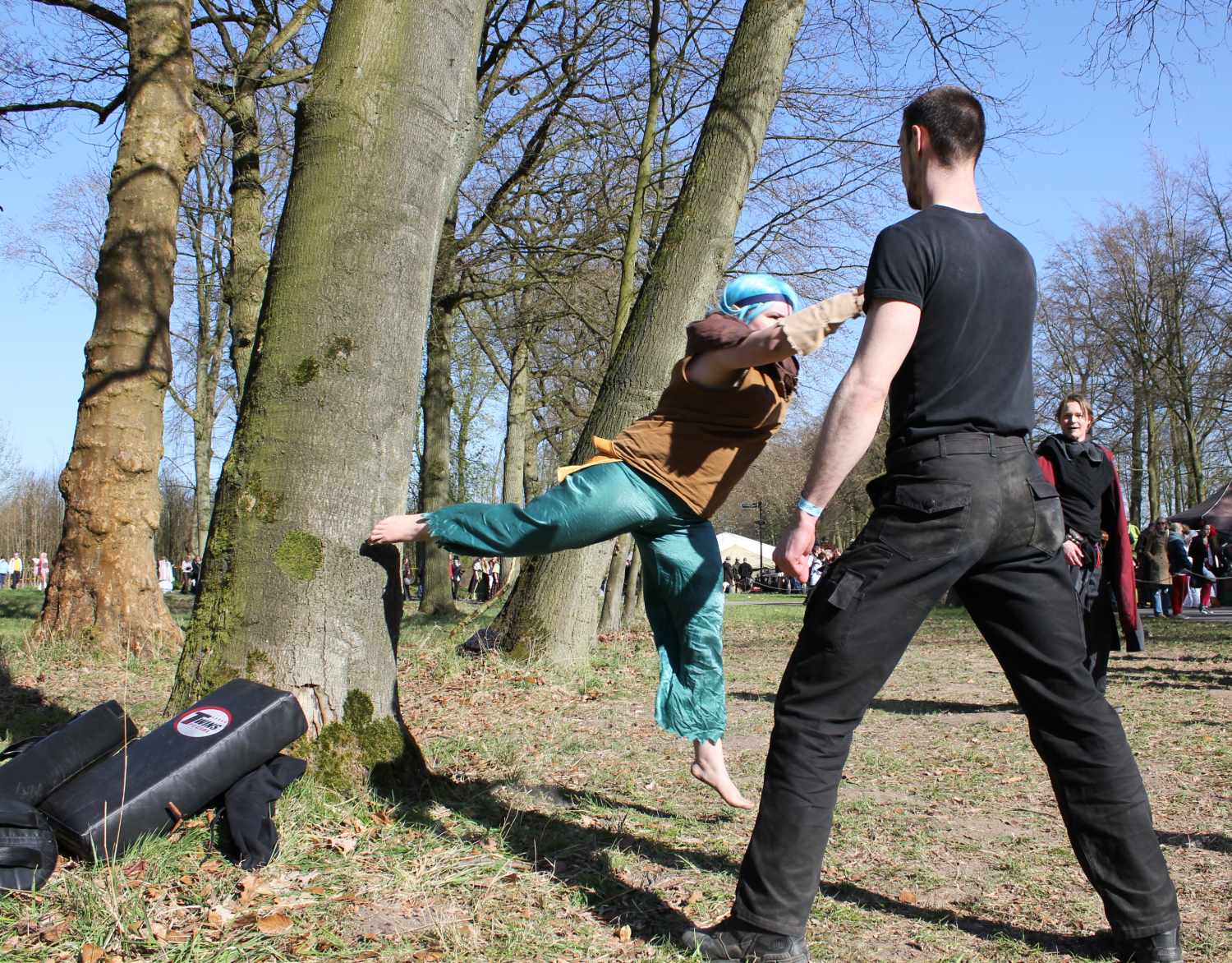 Het heeft even moeite gekost, maar het is fotografe Debbie van der Zande gelukt om een selectie uit haar 2000 foto’s van de Elf Fantasy Fair te maken. Hieronder zie je een aantal van de mooiste. Als je ze allemaal wilt zien, kijk dan op de Qu’Mar Facebook pagina (en like die ook gelijk even) en bekijk de albums: workshops zaterdag, workshops zondag (beide met onderaan alle boomsprongen!) en Qu’Mar Ti-jin & MARS demo’s. De krijgsmeester waardeert het zeer als je jezelf en bekenden tagt in de foto’s. Hoe meer mensen zien hoe gaaf de Jinai krijgskunstenzijn en hoe goed het te leren is tijdens een workshop, hoe beter.