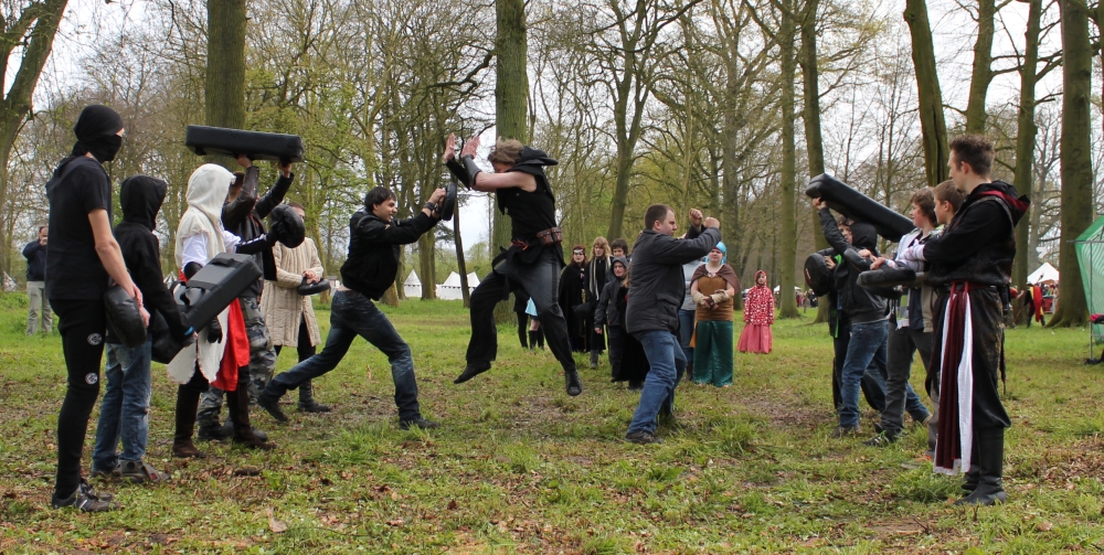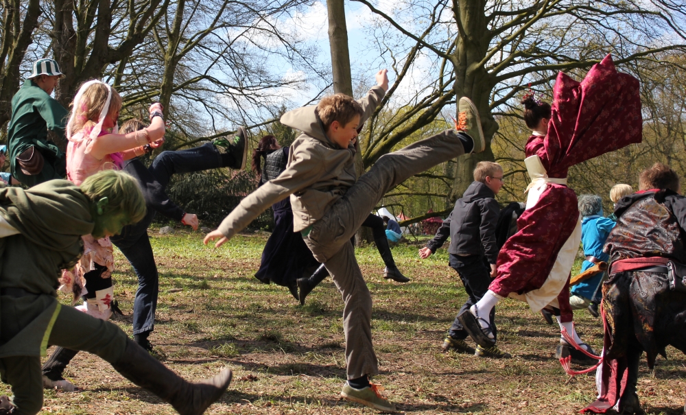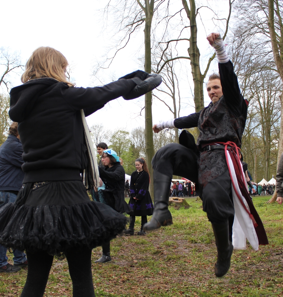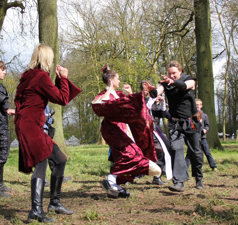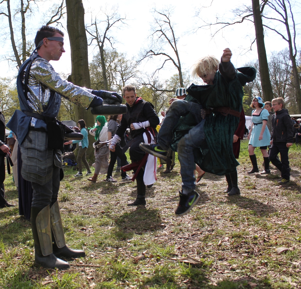 Ook de tweede dag van de Elf Fantasy Fair in Haarzuilens was een groot succes. De twee workshops die krijgsmeester Qu’Mar Ti-jin gaf werden erg goed bezocht, met een zeer gemeleerd publiek. Van jonge vampiers, tot zombies, ninja’s, pokemons en statige Elfendames. Er werd veel gelachen, er werden vijanden verslagen en er werden stevige lessen geleerd in de fantastische krijgskunsten. Hierbij een kort fotoverslag. Binnenkort meer, zoals een uitgebreider verslag, een videocompilatie en nieuwe verhalen!