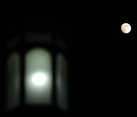 Een trap naar de maan, verhuld in het licht van een straatlantaarn.